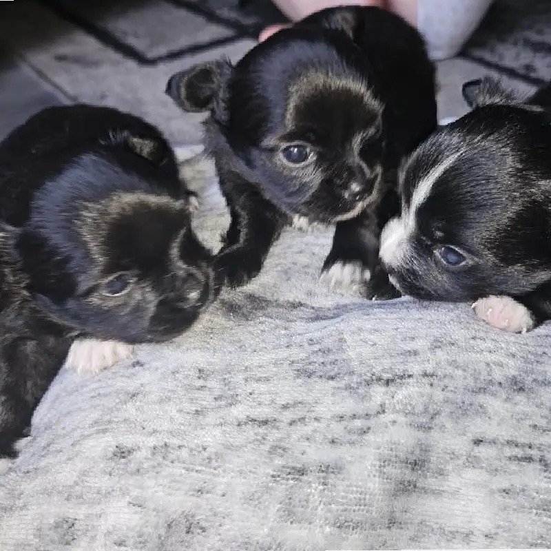 3 Adorable Long Haired Black and White Chihuahua Puppies